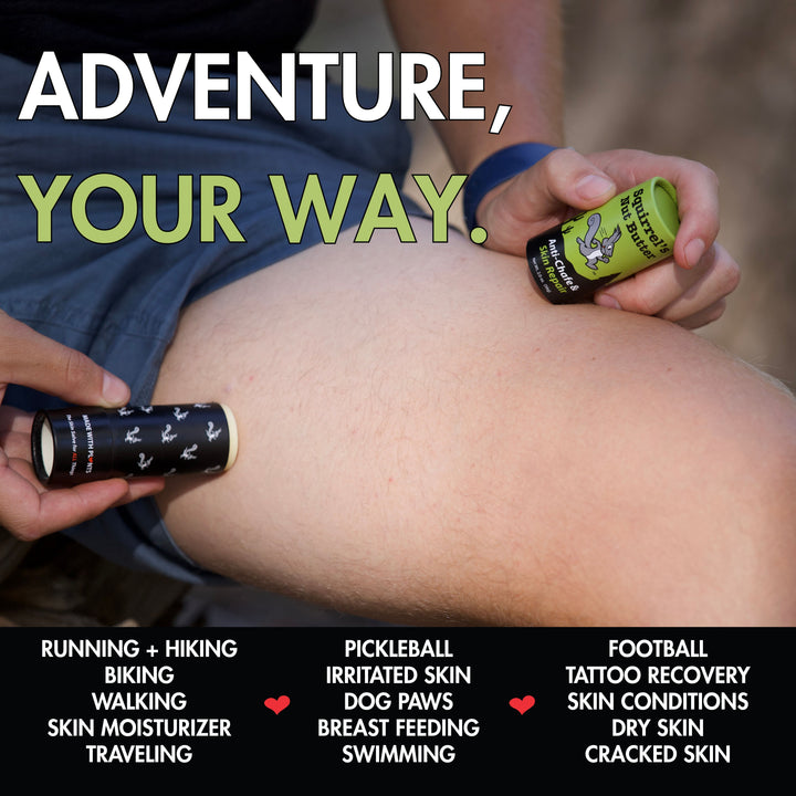 Protect areas of skin prone to chafing and blisters with the world's best all natural, anti-chafe salve.